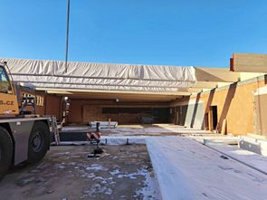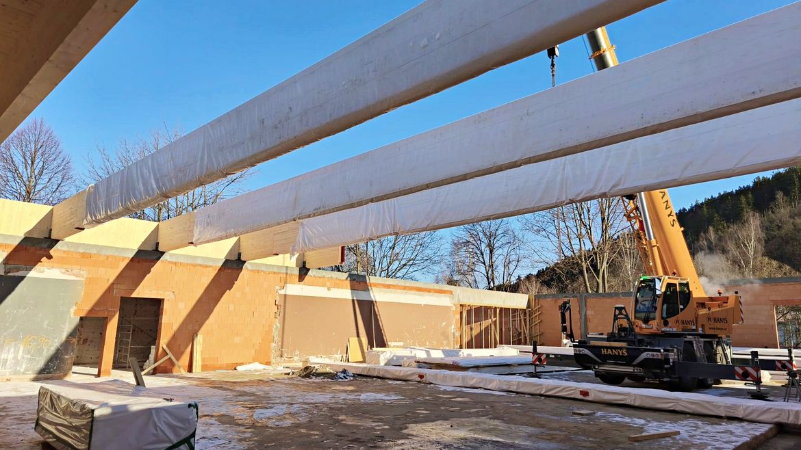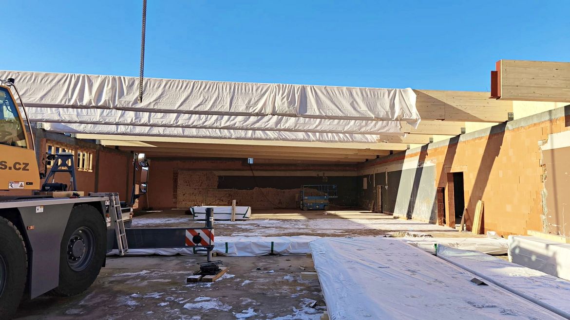 Currently, we moved from the production hall directly to the construction site and started to install a new roof construction for the Penny Market Vimperk.