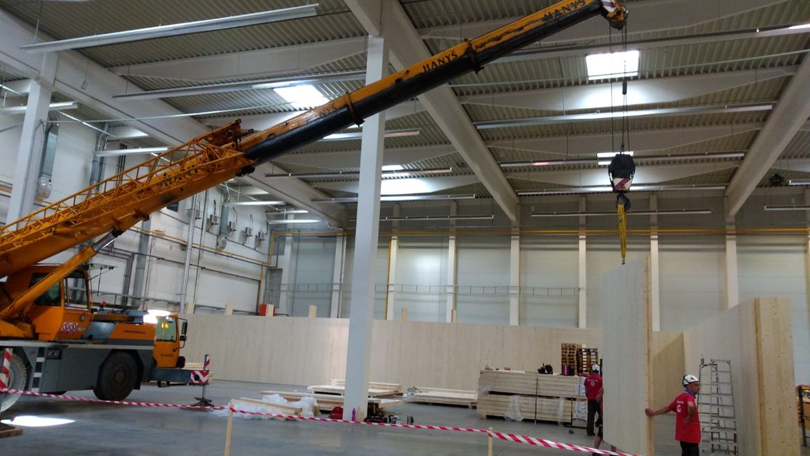 The mounting was done during peak of operations at premises and under strict safety measures. The supply and mounting of load bearing construction in combination of laminated frames and Stora Enso CLT panels went excellently.