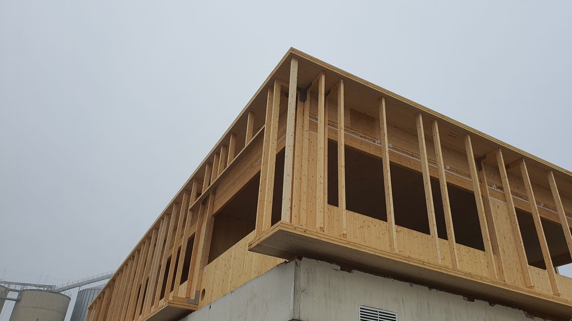 This supporting structure is a combination of BSH timber frames and CLT panels from MM Holz manufacturer.