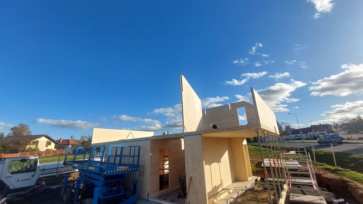 Dokončili jsme výstavbu hasičské zbrojnice v obci Psáry, kde v konstrukční části vestavby hraje hlavní roli CLT materiál.