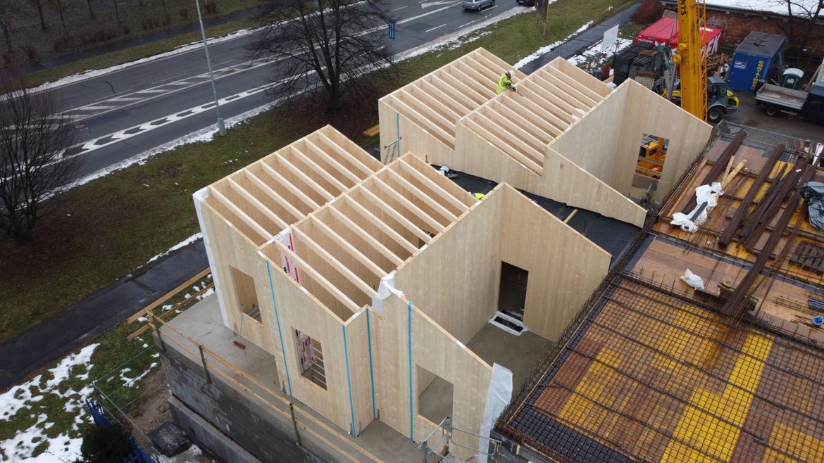 Dokončili jsme výstavbu zajímavé zakázky v Ostravě. Její nosná konstrukce pilových nástaveb na přístavbu kancelářské budovy firmy Adash je vytvořena ze systému Novatop, stěny Solid pak budou kombinovány se střešními prvky z BSH a zaklopeny pohledovou biodeskou.