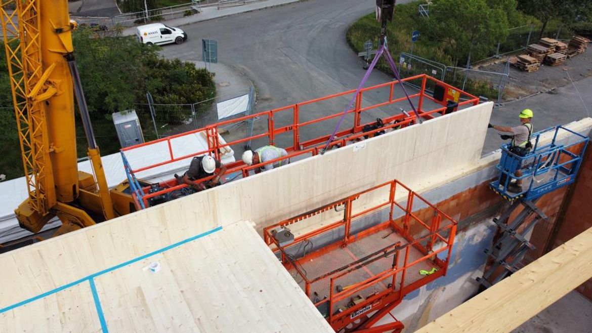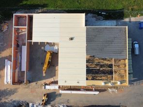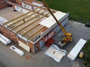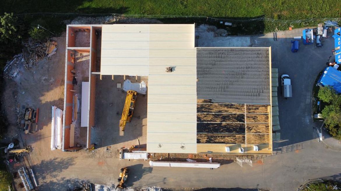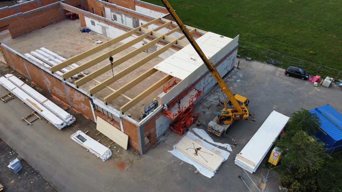 Dokončili jsme montážní práce na střešní konstrukci prodejny Penny Market v Milevsku. Nosná konstrukce je tvořena stropy z CLT a nosníky z BSH.