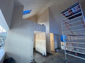 Dokončili jsme výstavbu rekreačního objektu ve Středních Čechách. Nosná konstrukce je vytvořena ze systému Novatop, stěny Solid, stropy element a střešní prvky Open pak budou kombinovány s rámy z BSH .
