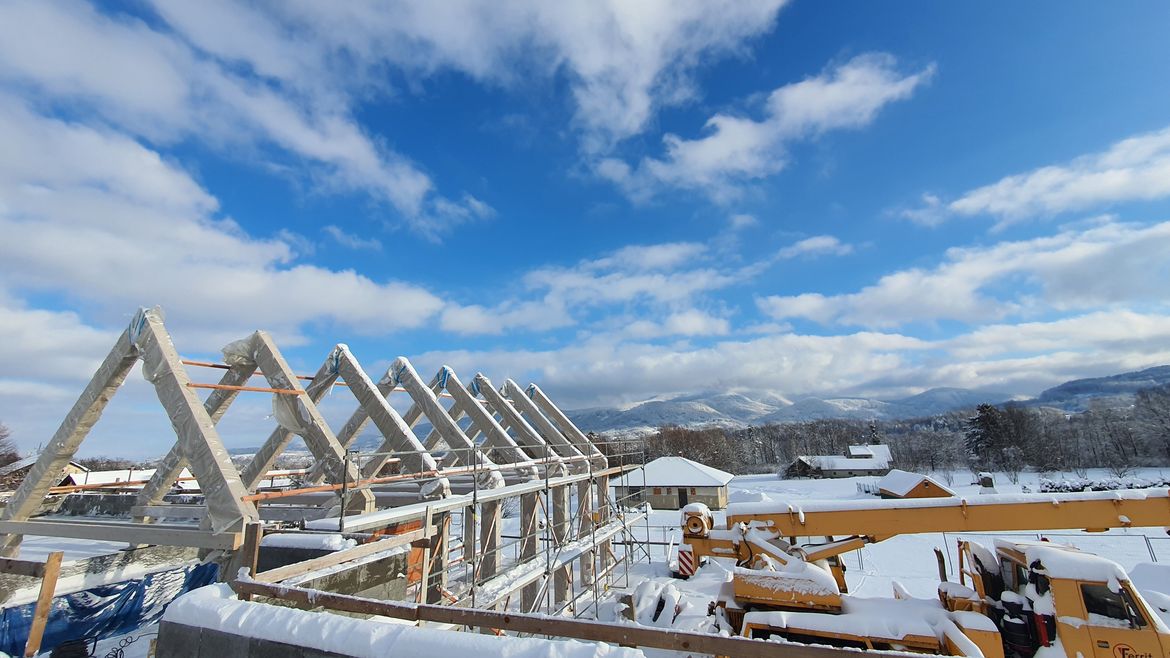 Na začátku roku 2023 jsme dokončili montážní práce na rodinném domě v samém srdci Beskyd. Nosná konstrukce rodinného domu je tvořena dominantními BSH rámy doplněnými o střešní záklop z CLT .