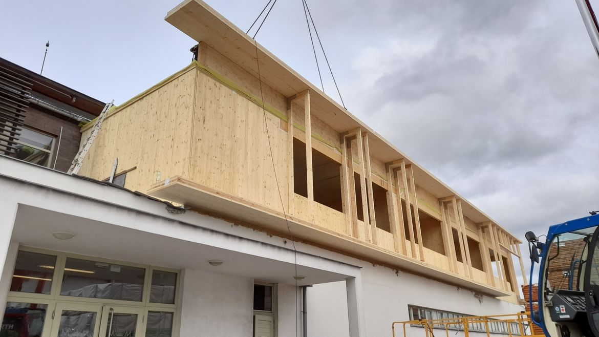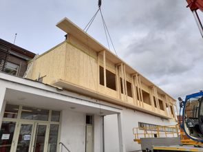 Na podzim 2021 jsme se podíleli na montáži nosné konstrukce na rozšíření administrativní budovy firmy MM Holz v Paskově. Tato nosná konstrukce je kombinací rámů z lepeného lamelového dřeva a CLT panelů výrobce MM Holz.