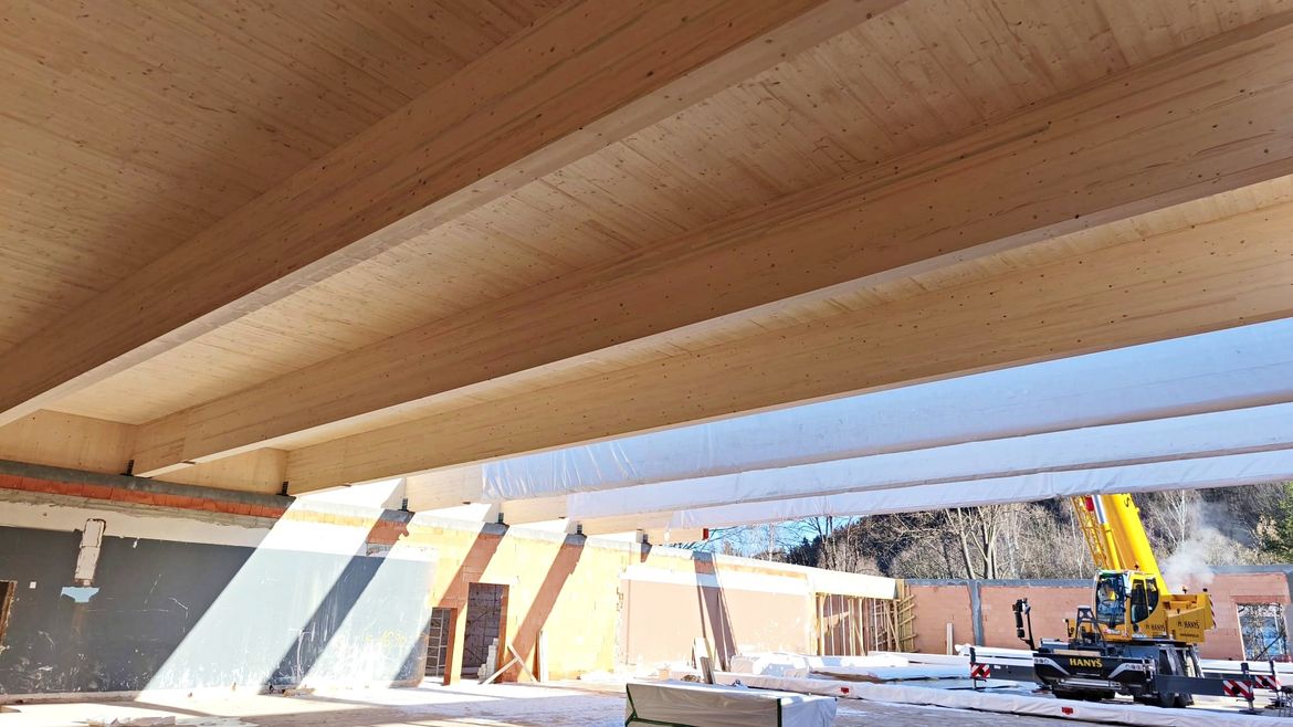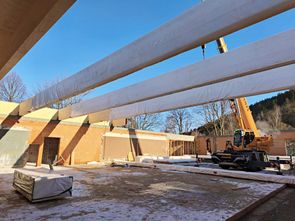 Currently, we moved from the production hall directly to the construction site and started to install a new roof construction for the Penny Market Vimperk.