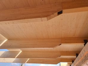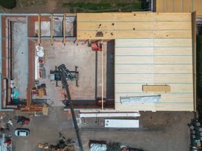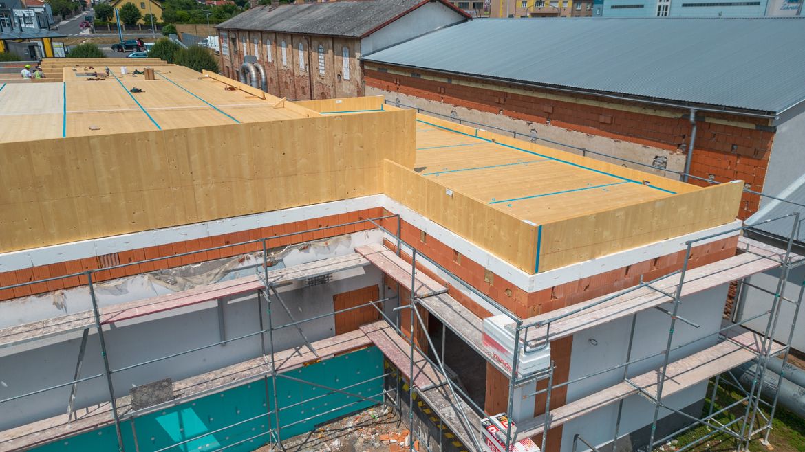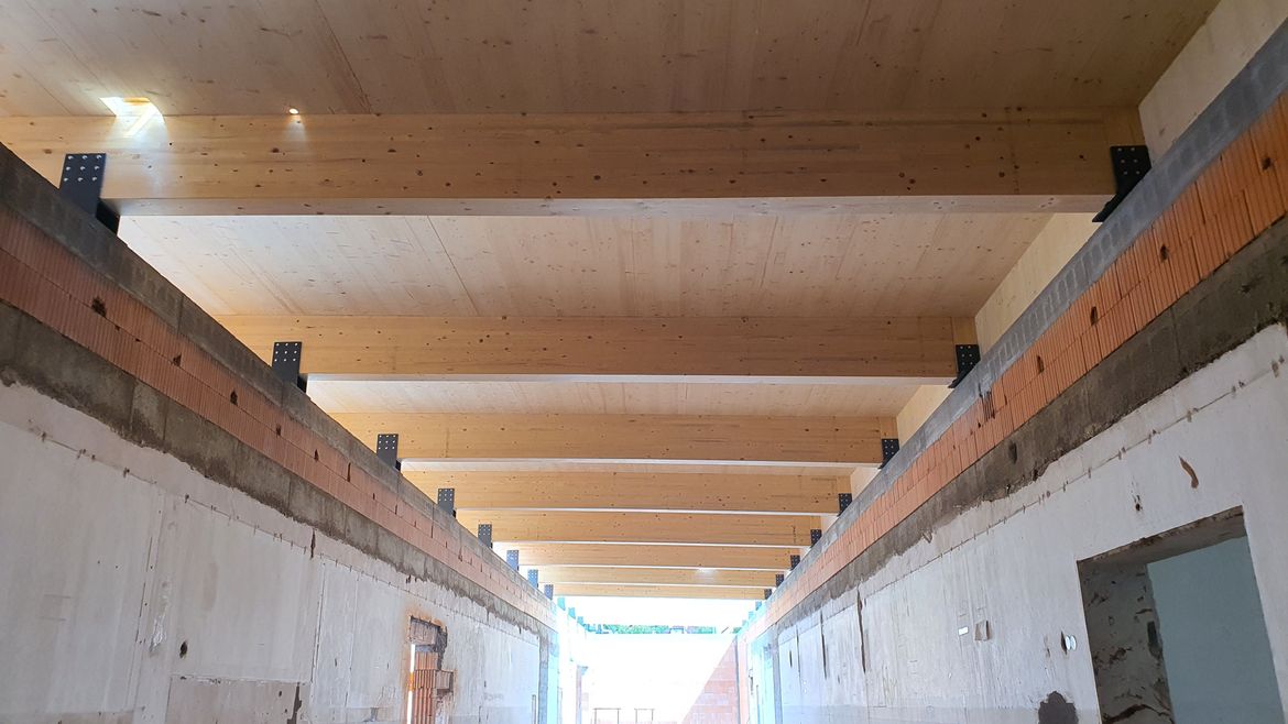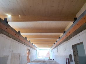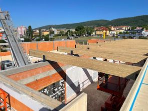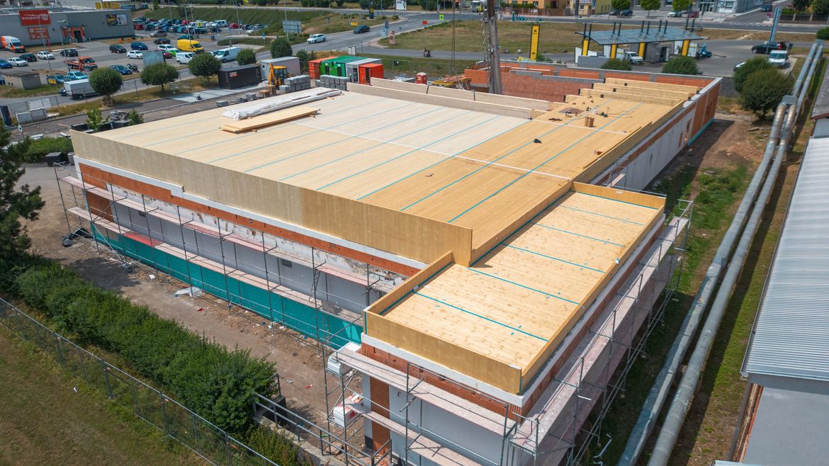 We have completed the woodworking of BSH beams for the roof structure of the Penny Market store in Beroun. The load-bearing structure is consist of CLT ceilings and BSH beams.